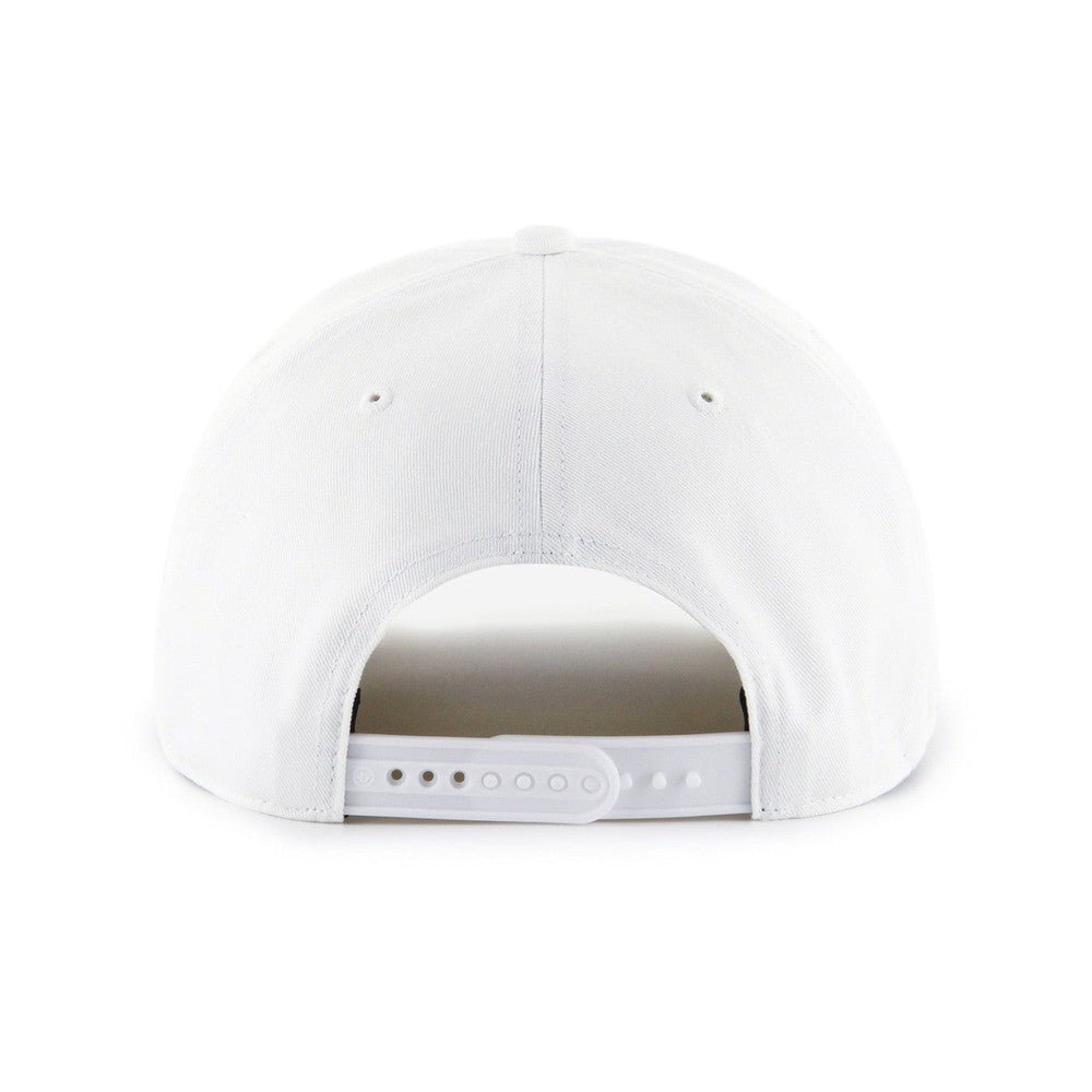 This hat features the ’47 HITCH style — a relaxed and curved adjustable with flat embroidery on the front and a plastic snapback closure.