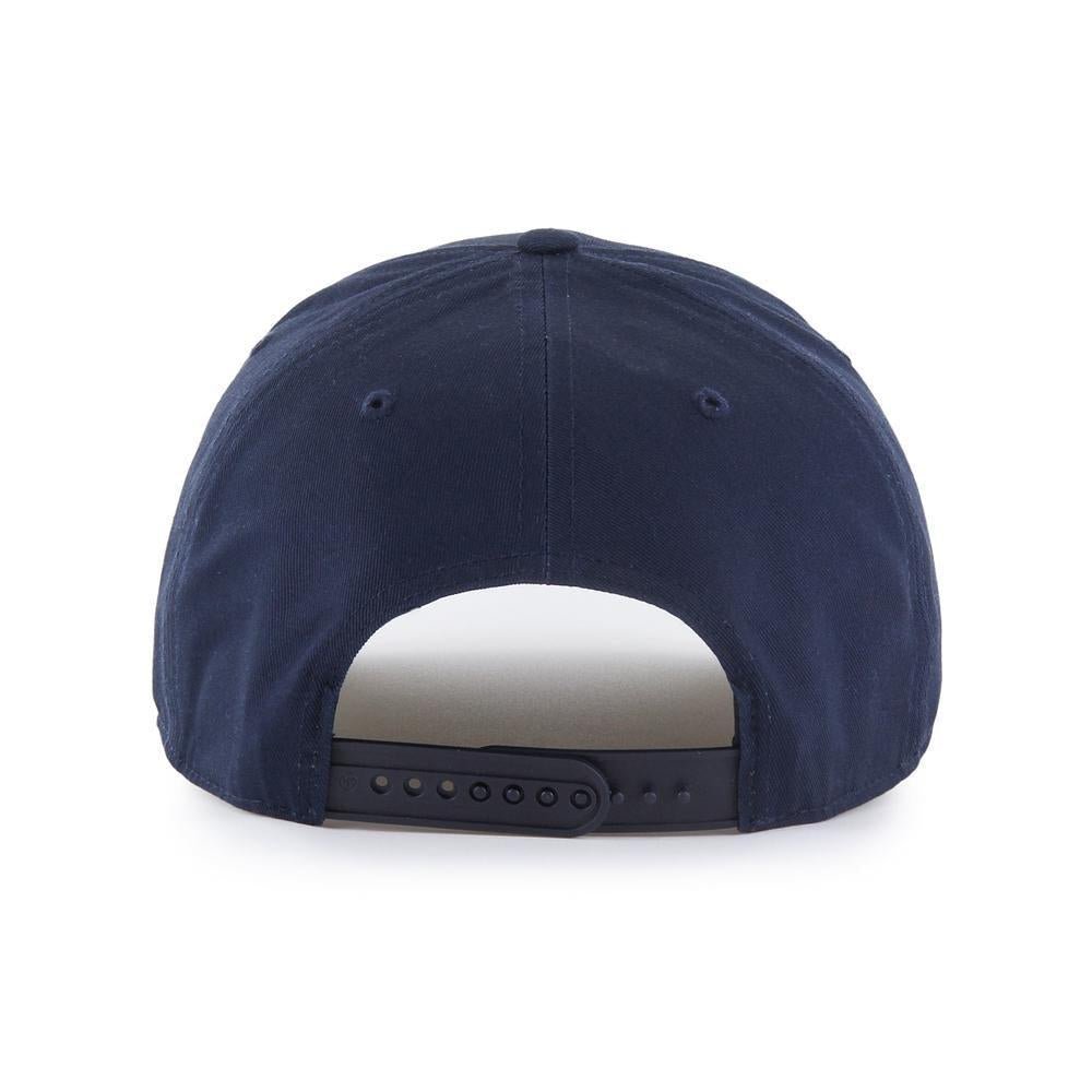 This hat features the ’47 HITCH style — a structured and curved adjustable with flat embroidery on the front and a plastic snapback closure.
